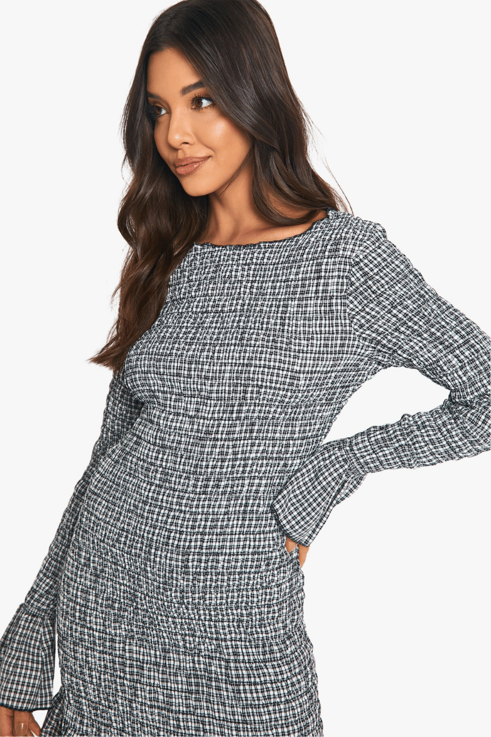 Be the first to review “Check Shirred Long Sleeve Mini Dress” Cancel reply
