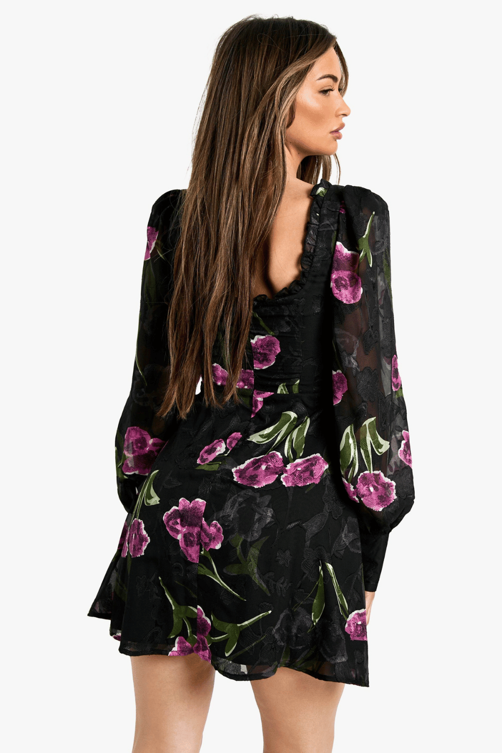Lightweight, floaty and oh-so-chic, a chiffon dress is the ultimate day-to-night piece in any girl's wardrobe. An airy sheer fabric which is perfect for evening wear, let your dress do the talking and prepare to turn some serious heads in this pretty dress. Need inspo? Team this one with ankle boots and a leather jacket to nail the ultimate smart-casual look, or opt for barely-there heels for nights that require a little more glam. New mantra: this dress, on repeat. Style: Skater Dress Design: Floral Fabric: Chiffon Length: Mini Neckline: Sweetheart Sleeve Length: Long Sleeve 100% polyester, model wears size 10, machine washableAdditional information