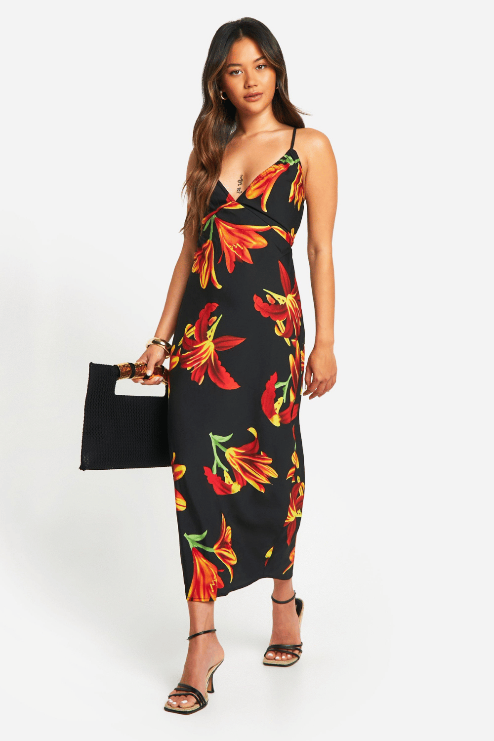 Introducing the 90's throwback piece that’s now a wardrobe essential - sass up your look this season with this cami dress from our latest collection. A loose fitting dress which is comfy, chic, and endlessly versatile, a camisole dress is the perfect transitional piece to add to your collection. Pair this slip dress with chunky sandals and beachy waves for summer style or layer up in winter with a simple turtleneck jumper and classic black boots. Whatever the season, it’s everything you’ve been scrolling for. Style: Slip Dress Design: Floral Fabric: Crepe Length: Midaxi Neckline: Plunge Sleeve Length: Strappy 100% polyester, machine washable.Additional information