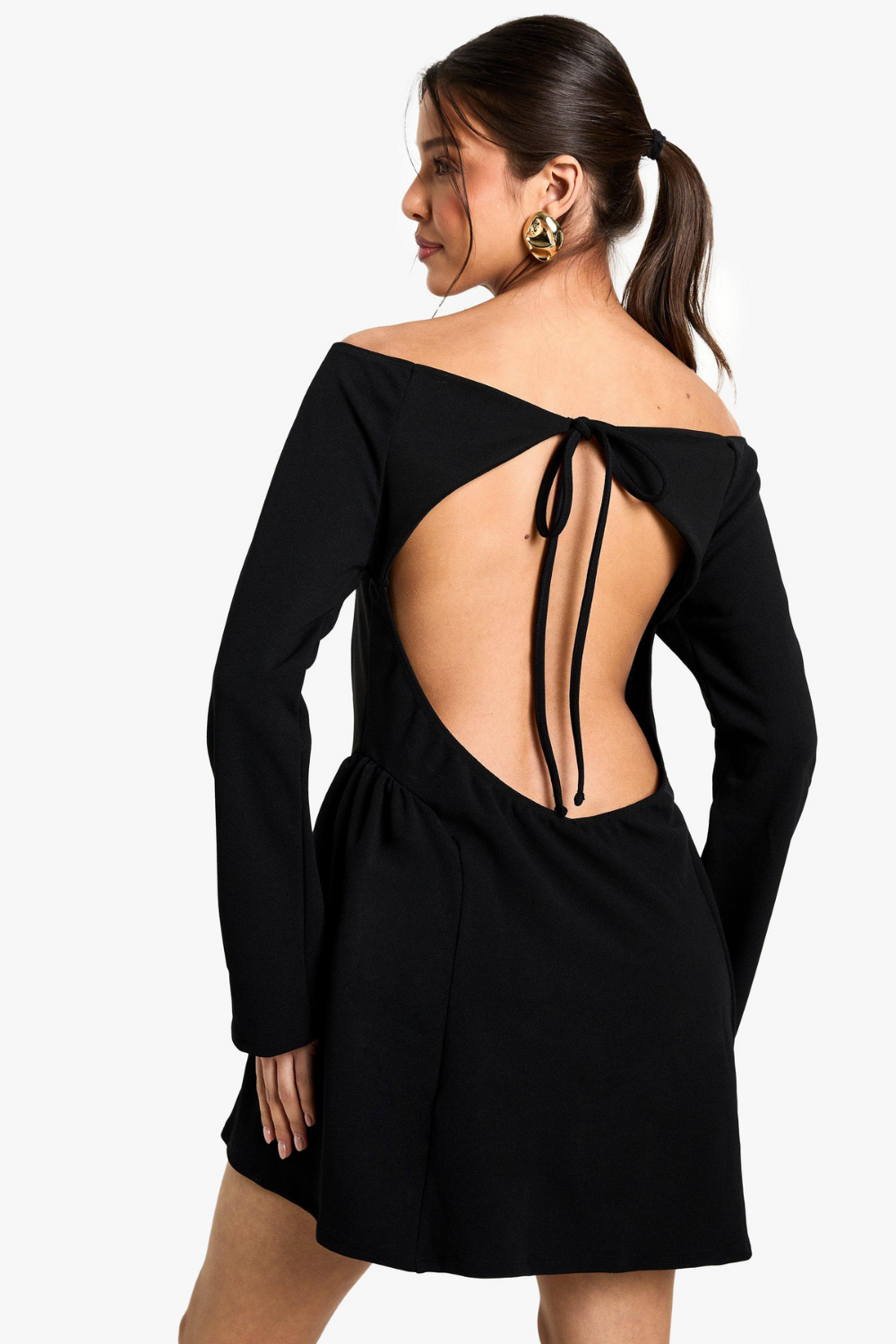 High Bardot Tie Back Skater Dress