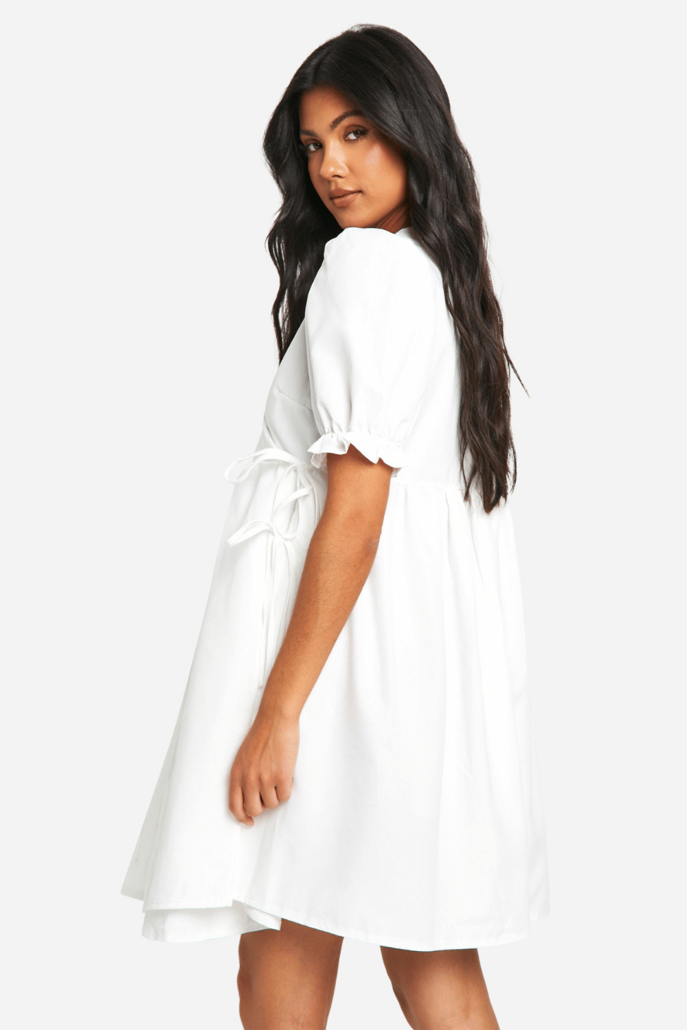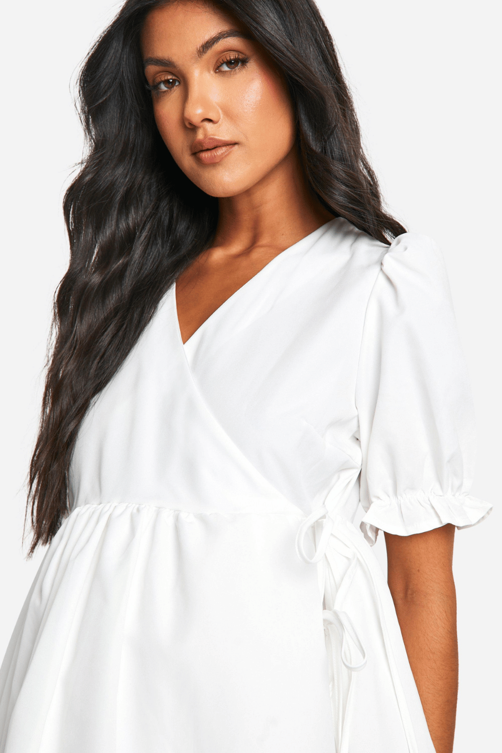 Maternity Puff Sleeve Wrap Mini Smock Dress