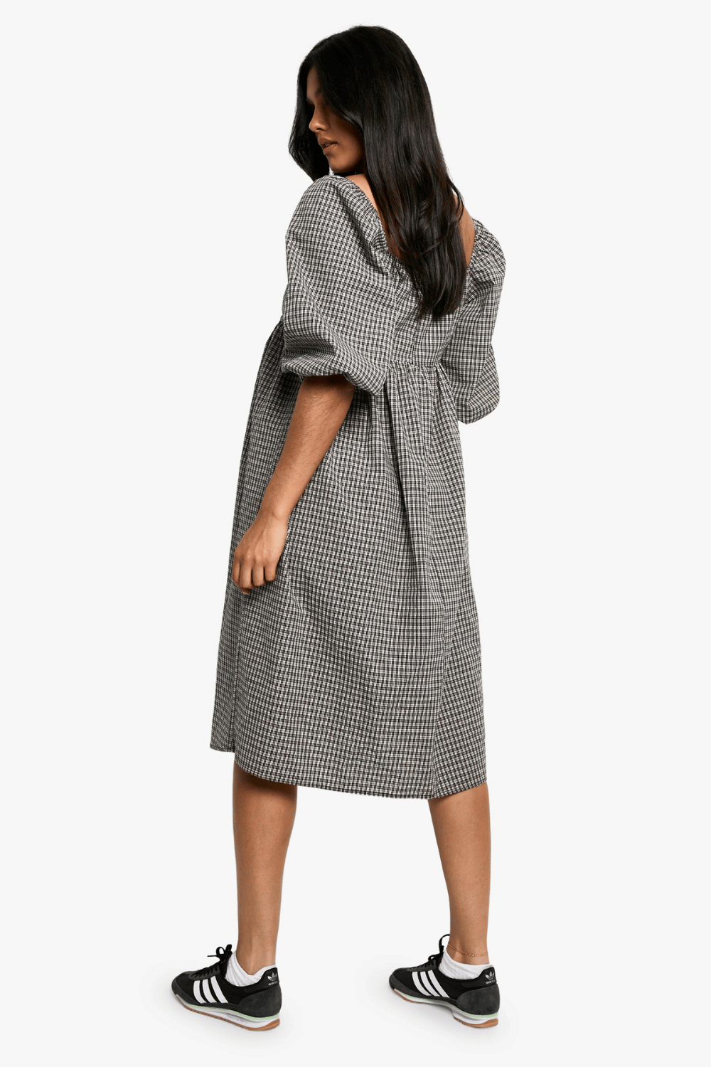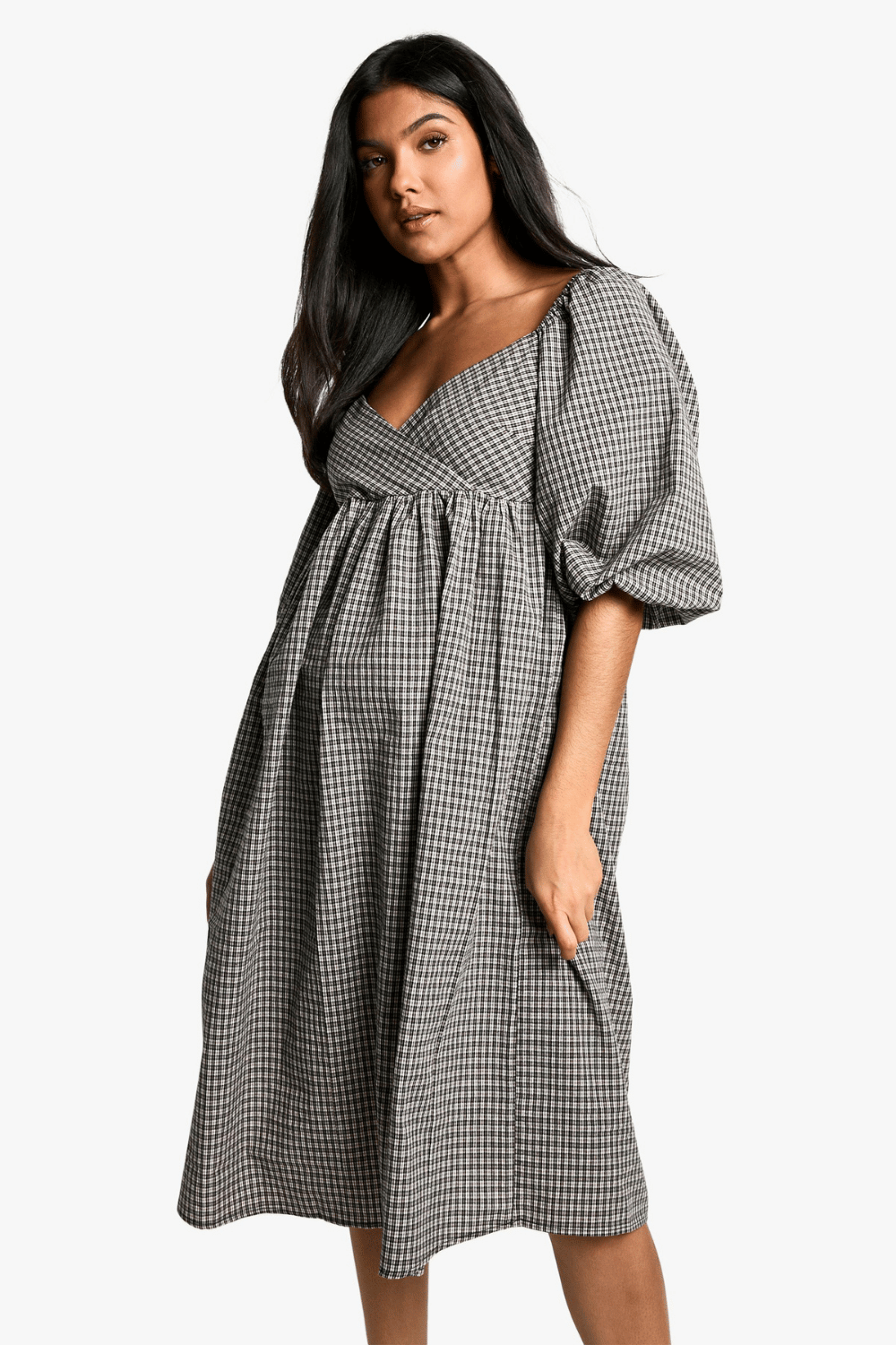 Maternity Woven Check Puff Sleeve Smock Midi Dress