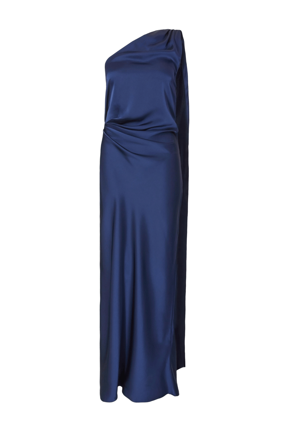 This maxi dress features a one-shoulder design with a wrap neck and ruched detailing, providing a flattering silhouette. Ideal for formal occasions, it offers comfort and elegance in a flowing style.Additional information