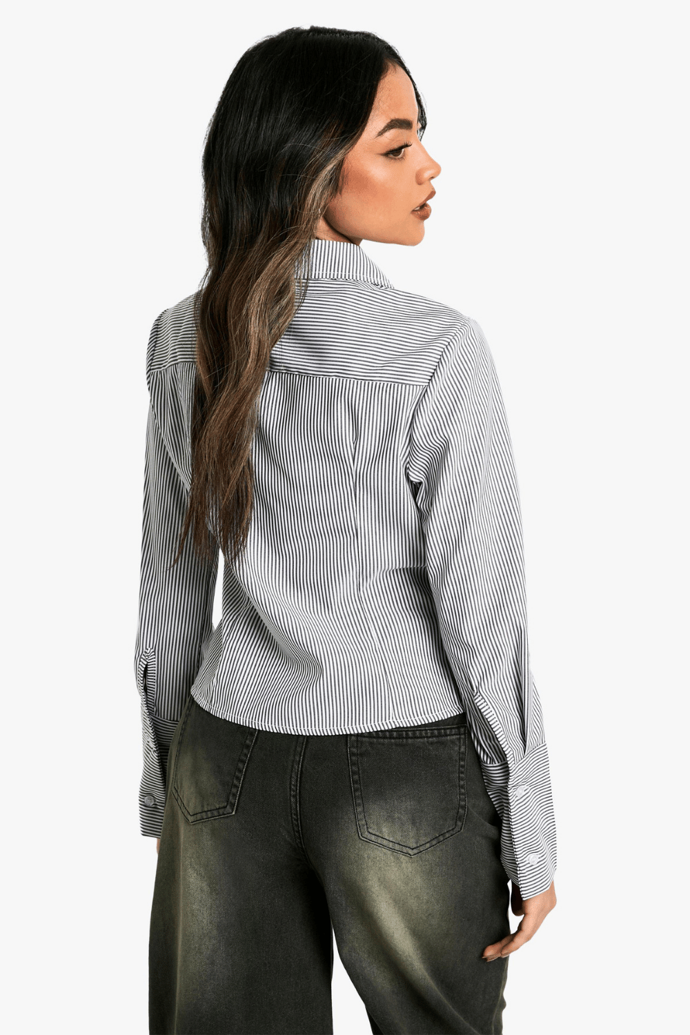 Be the first to review “PINSTRIPE DIP HEM FITTED SHIRT” Cancel reply