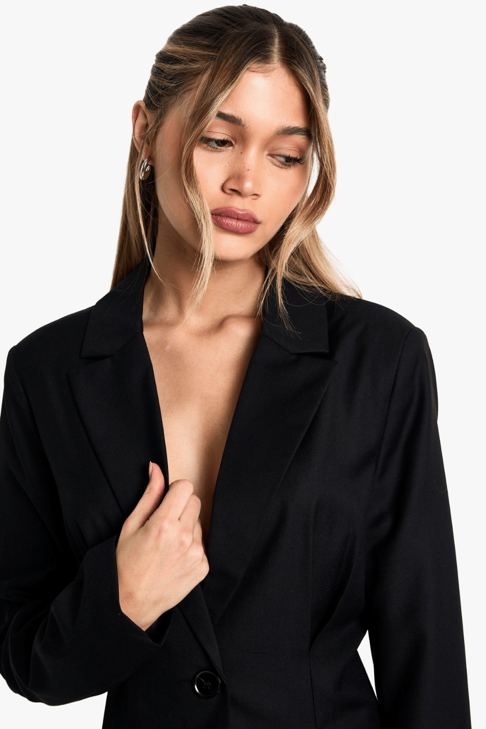 Be the first to review “Pleat Detail Cinched Waist Blazer” Cancel reply