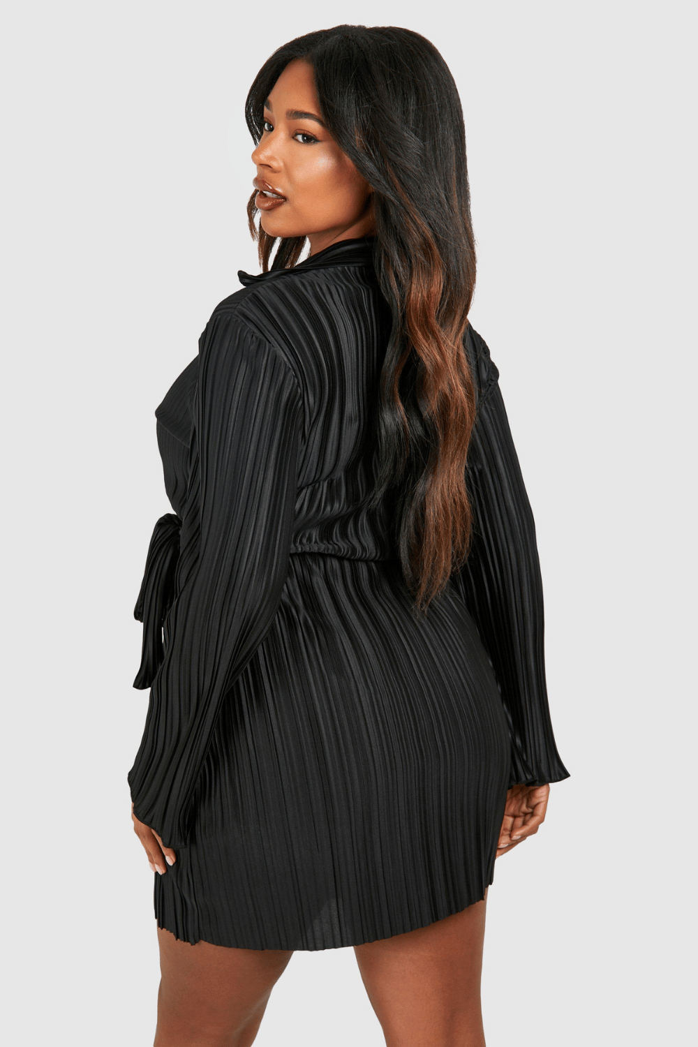 Bring a new kinda attitude in this latest piece from our collection of plus size dresses. Available in UK sizes 16-24, our range of curve dresses carries all the on-trend pieces you need to feel confident. Whether it's a plus size black dress or skater style you're adding to your basket, we promise no more awkward fits, just dresses you can depend on. Work a flattering plus size t-shirt dress or smock shapes during the day, then take on the night in sexy styles, maxi lengths and Bardot necklines. From sexy plus size dresses to work-wear appropriate options. Style: Wrap Dress Fabric: Plisse Length: Mini Sleeve Length: Long Sleeve 100% PolyesterAdditional information