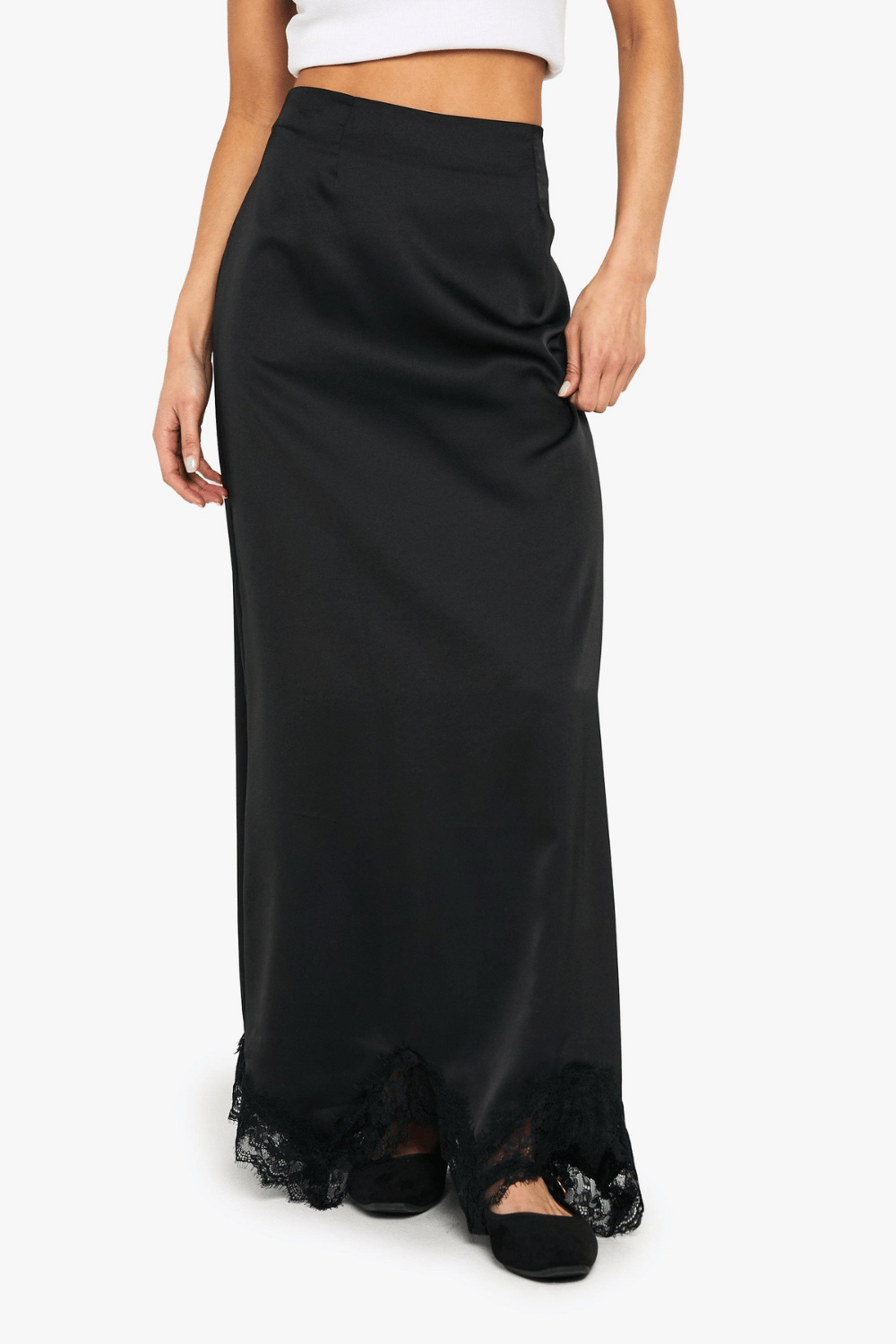 Satin Lace Trim Maxi Slip Skirt