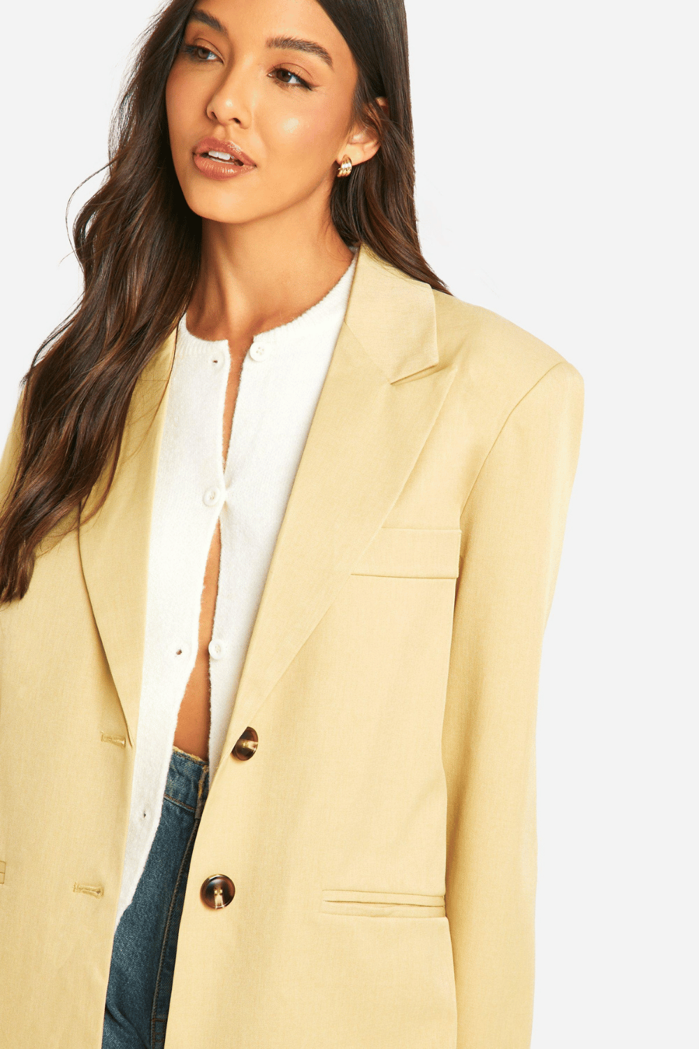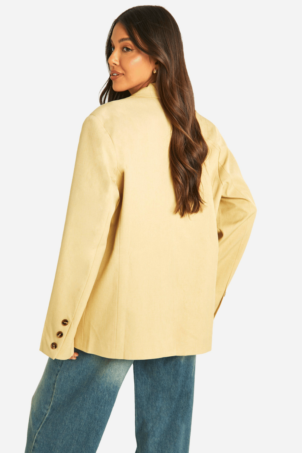 A menswear classic with a feminine edge, add a touch of soft tailoring to your wardrobe with a blazer. Resembling a suit jacket but cut more casually for an effortlessly chic look, blazers are the trans-seasonal piece you need. Featuring lapels and button detailing, we've got blazers for women who wanna bring a new kinda energy to their outfits. Team a double breasted blazer with some heel boots, or get on board with the oversized trend and go for longline pieces for an edgy vibe. Style: Blazer Design: Plain Fabric: Woven Crepe Length: Longline Neckline: Collared Sleeve Length: Long Sleeve 96% Polyester, 4% Elastane/Spandex. Lining: 100% Polyester. Wash with similar colours.Additional information