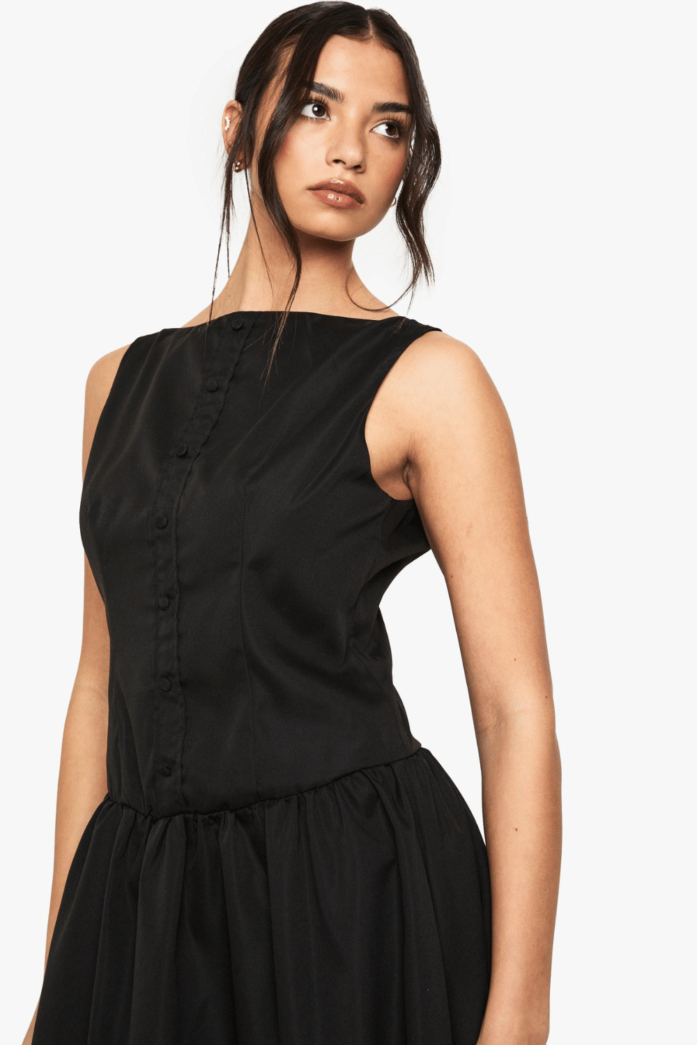 Slash neck Button Detail Maxi Dress